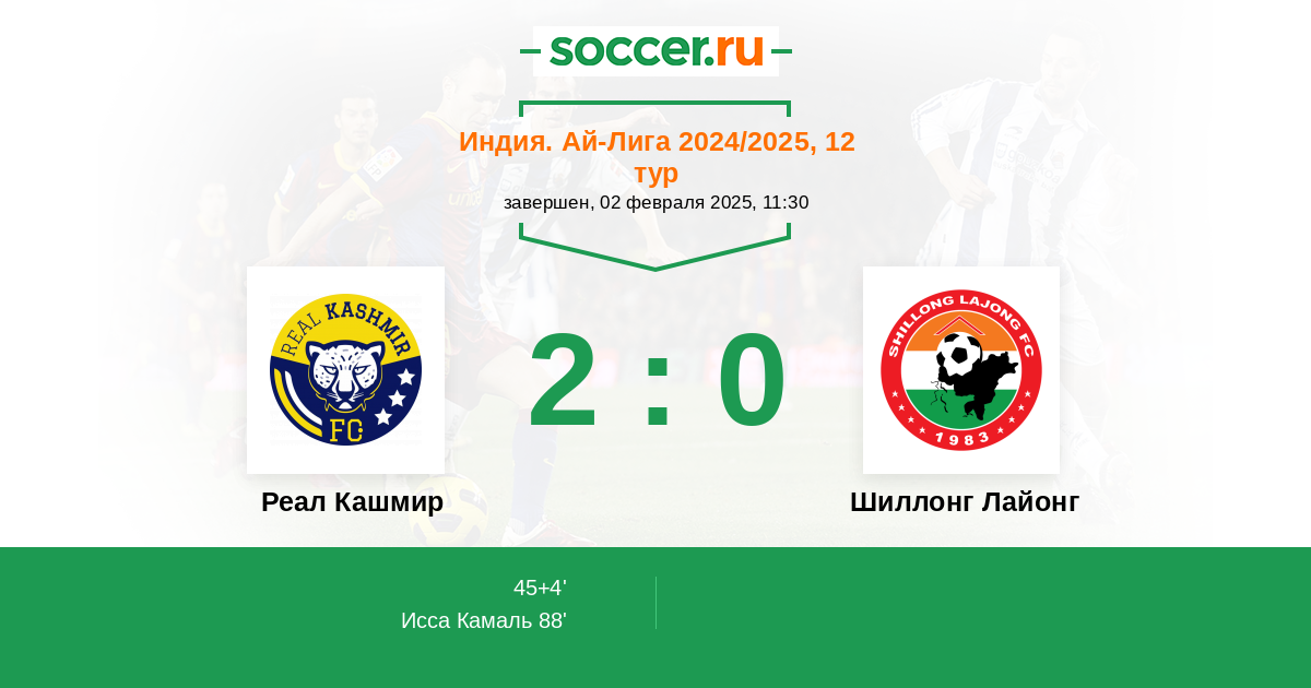 Шиллонг Лайонг 0:1 Реал Кашмир