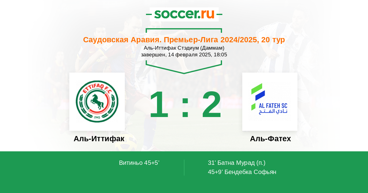 | Аль-Фатех | 44:27 | 20:12 | 24:15 |