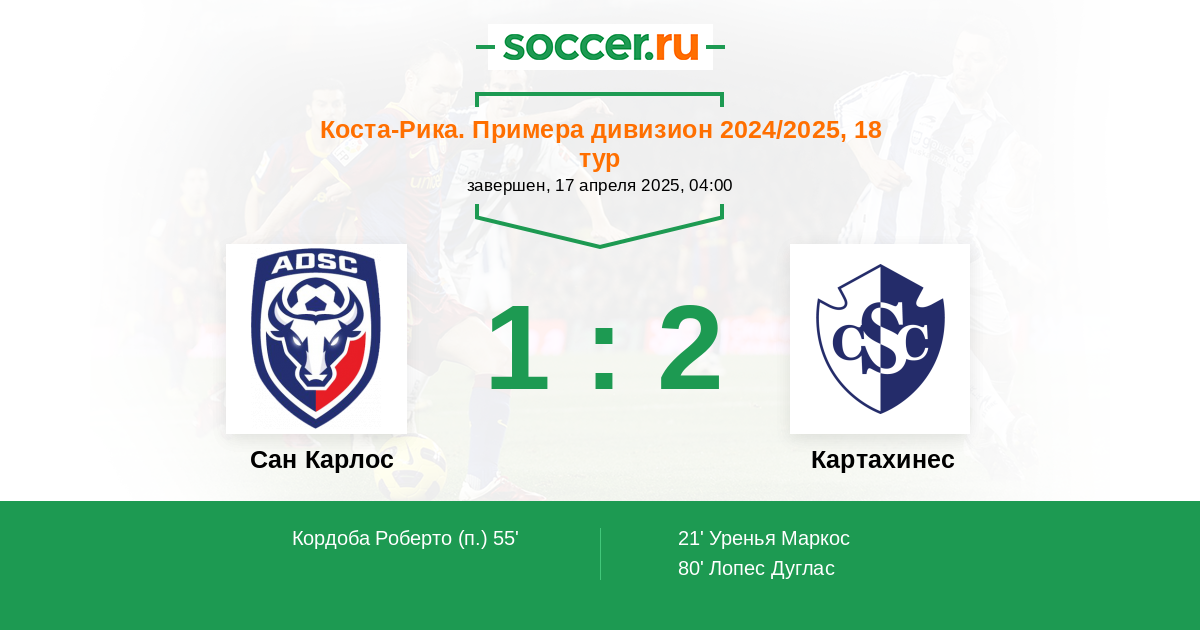 | Коста-Рика. Примера дивизион | 55 | 10 | 25 | 20 |
