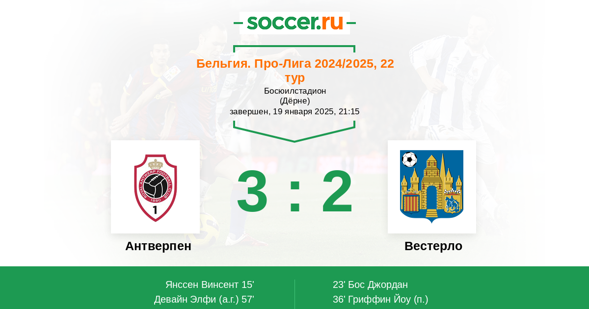 | Антверпен | 30:36 | 13:12 | 17:24 |