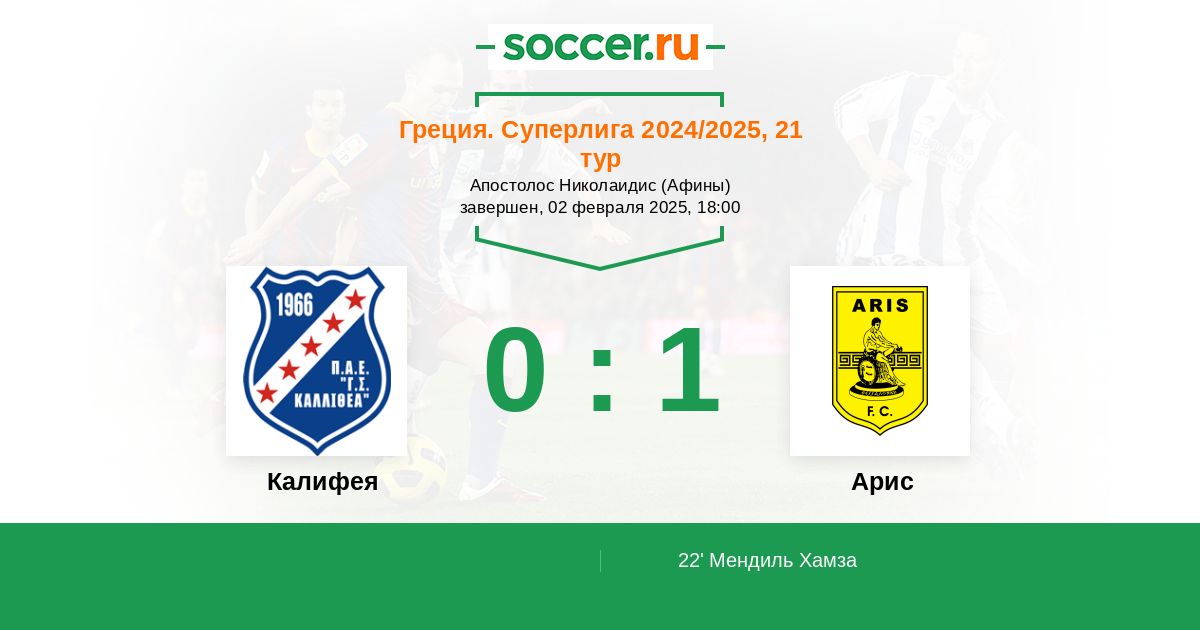 | Арис | 2:0 | 2:0 | 0:0 |