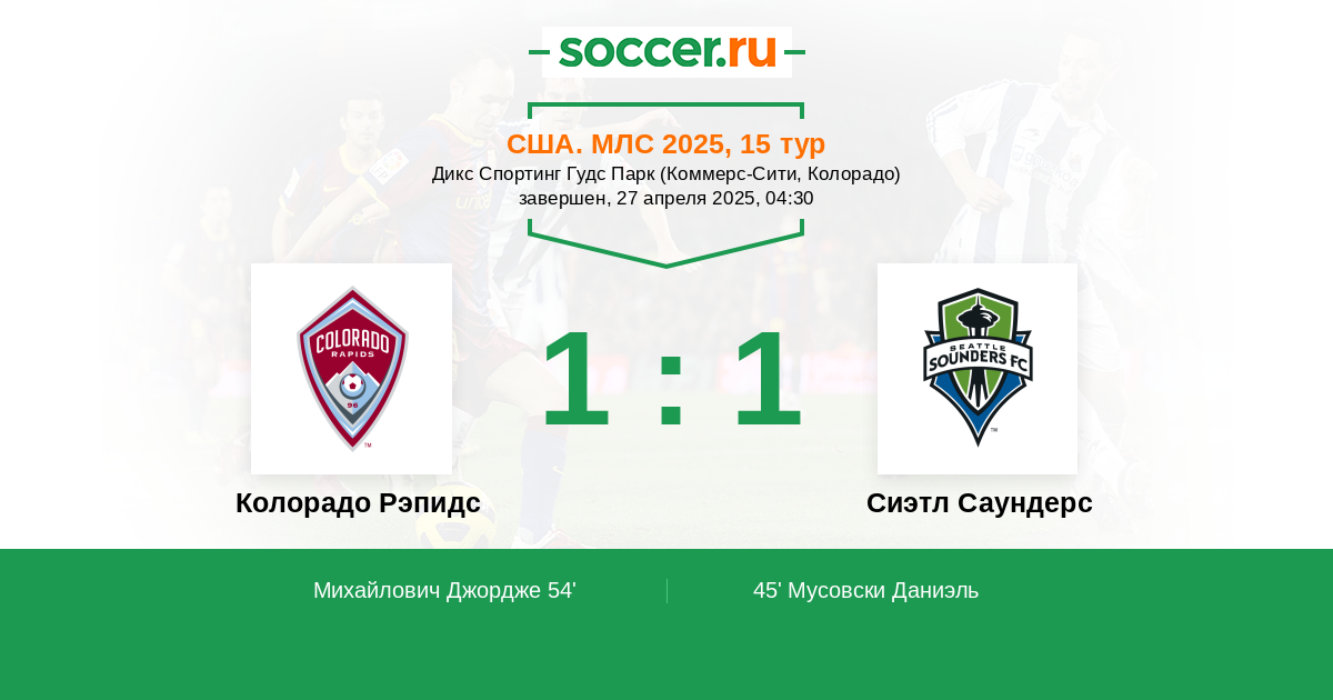 | Колорадо Рэпидс | Сиэтл Саундерс | |
