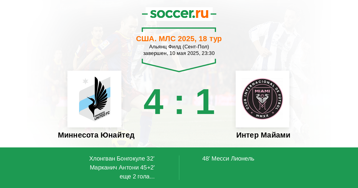 | Миннесота Юнайтед | 1:2 | 0:0 | 1:2 |
