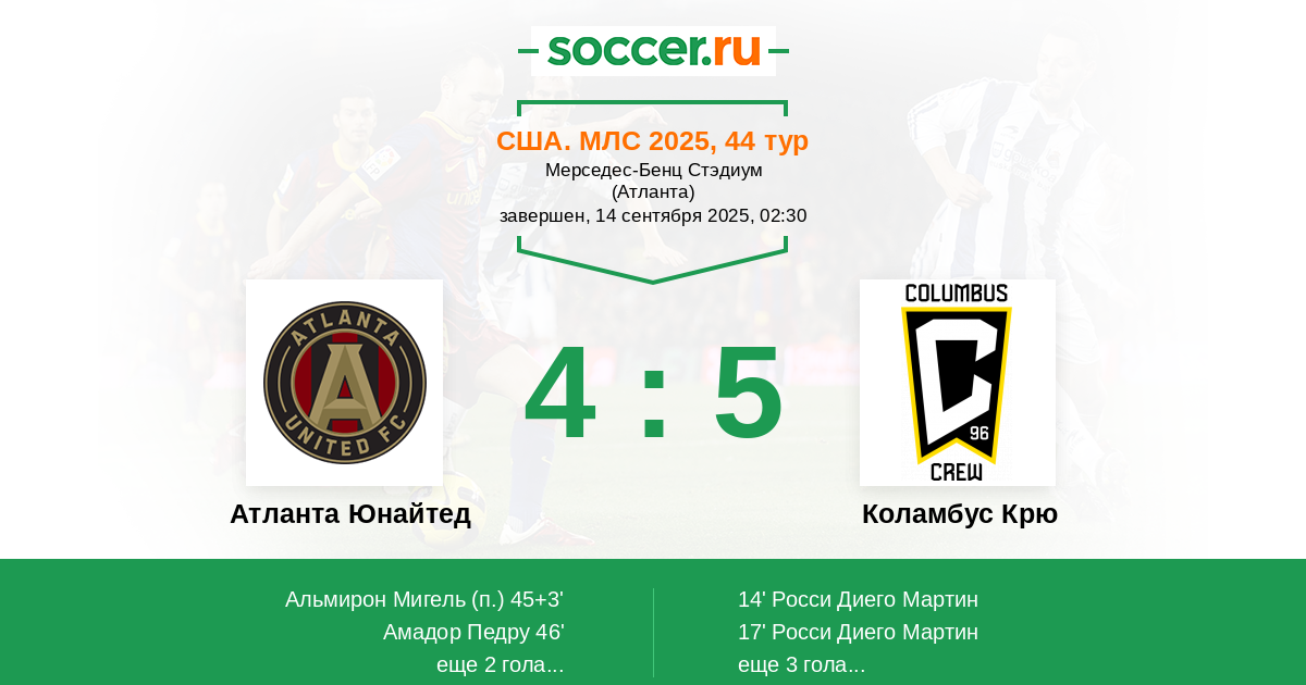 | Атланта Юнайтед | 32:40 | 15:14 | 17:26 |
