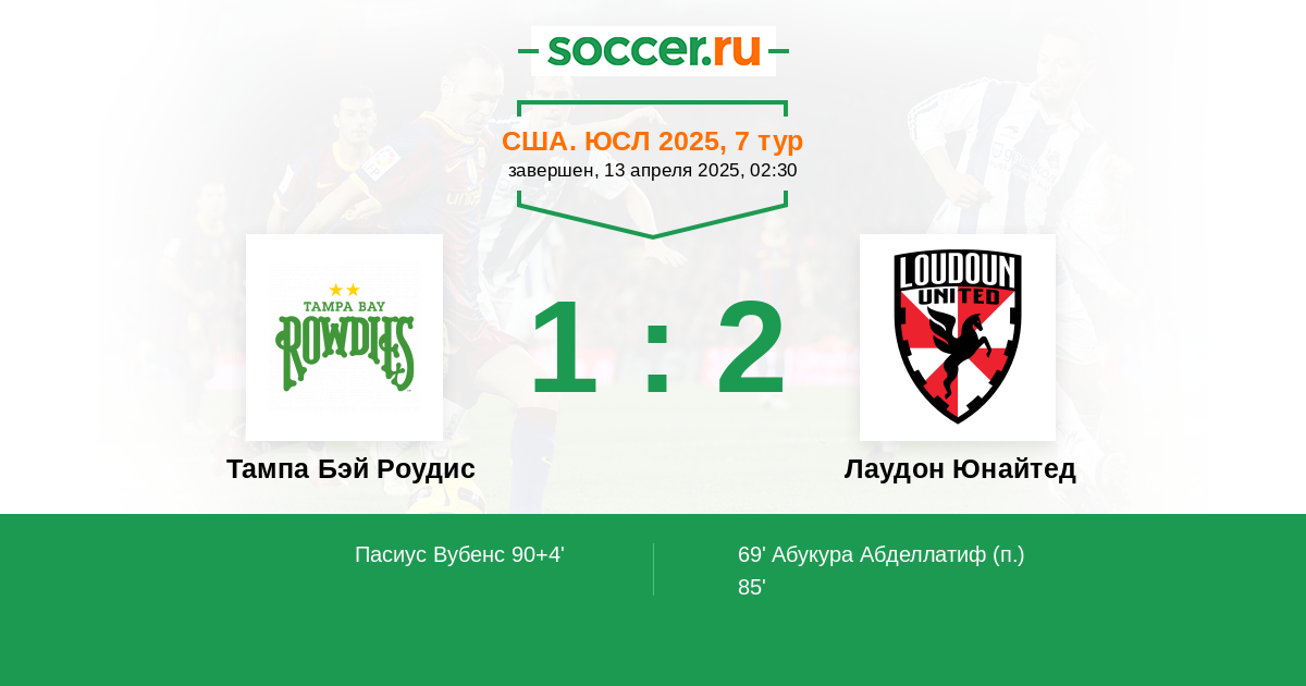 | Тампа Бэй Роудис | Лаудон Юнайтед | |