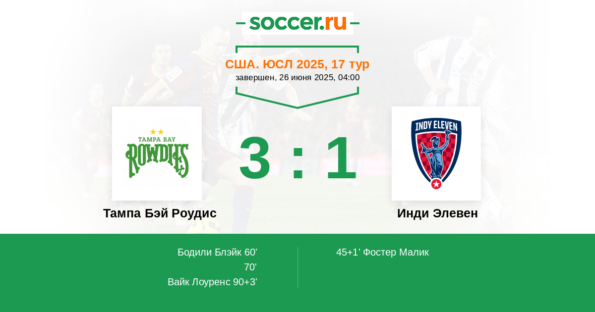 | Инди Элевен | 7:18 | 4:8 | 3:10 |