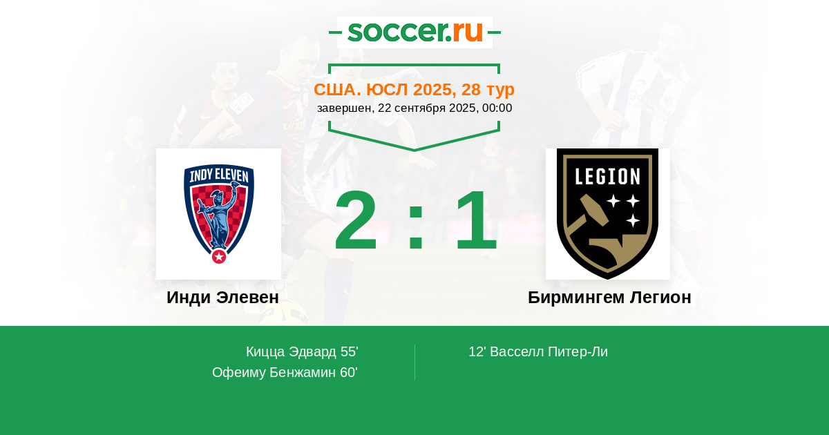 | Инди Элевен | Бирмингем Легион | |
