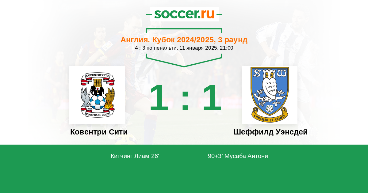 | Ковентри Сити | Шеффилд Уэнсдей | |