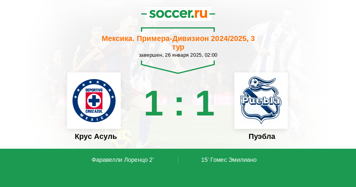 | Крус Асуль | Пуэбла | |