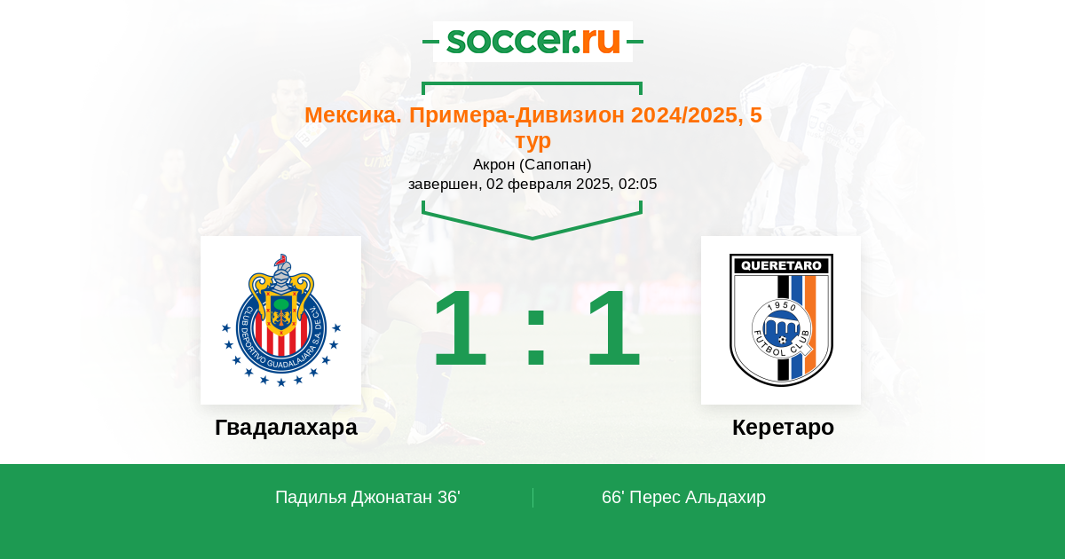 | Керетаро | 33:45 | 18:22 | 15:23 |