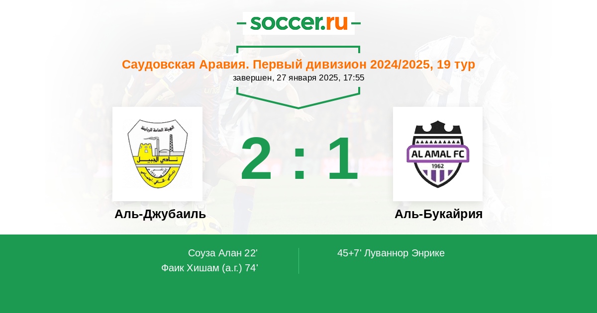 | Аль-Букайрия | 1:0 | 1:0 | 0:0 |