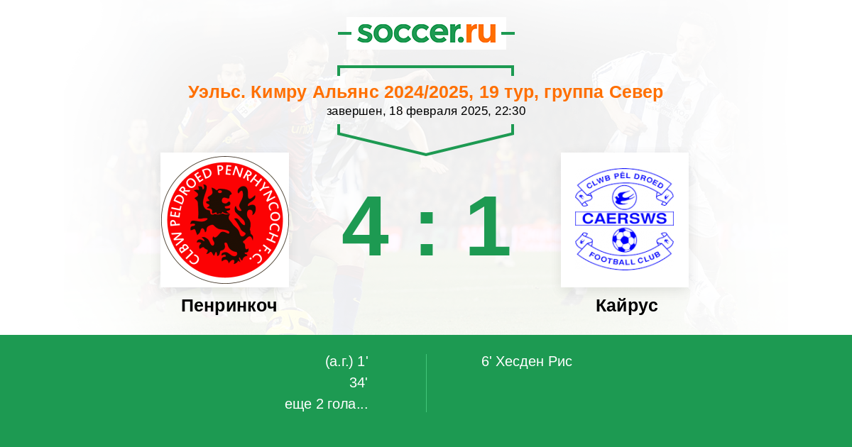 | Пенринкоч | 2:1 | 0:0 | 2:1 |