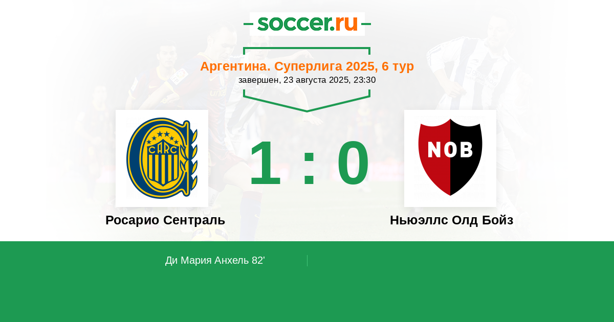 | Росарио Сентраль | 46:25 | 26:12 | 20:13 |