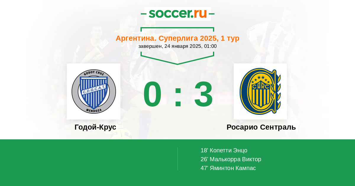 | Годой-Крус | 25:26 | 11:8 | 14:18 |