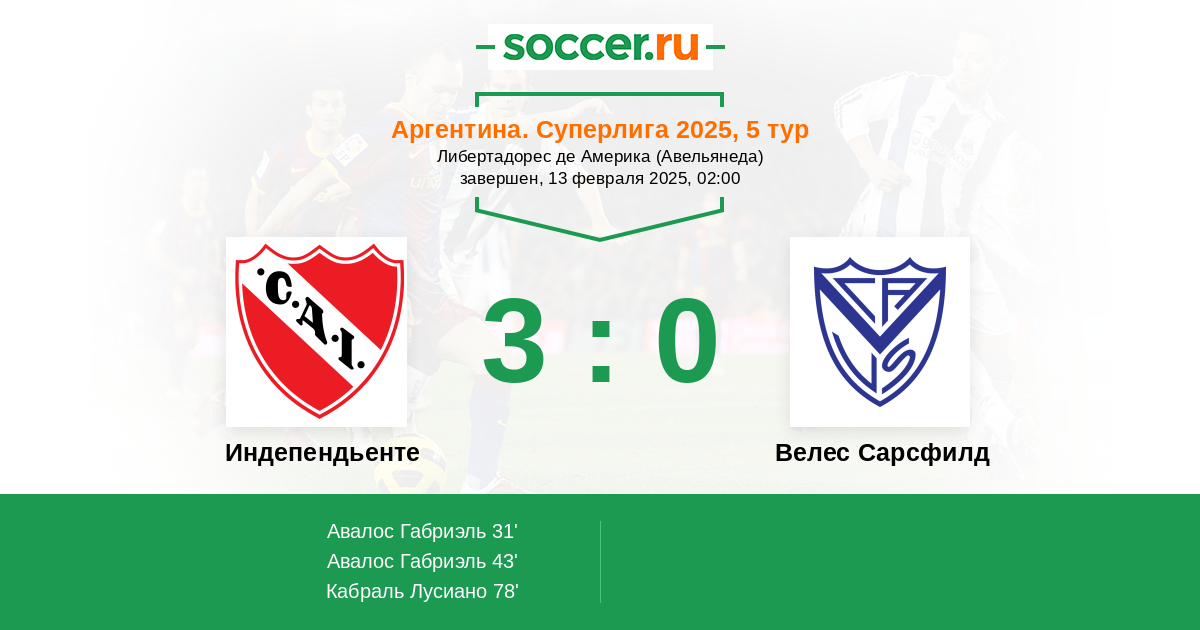 | Индепендьенте | 38:47 | 18:26 | 20:21 |