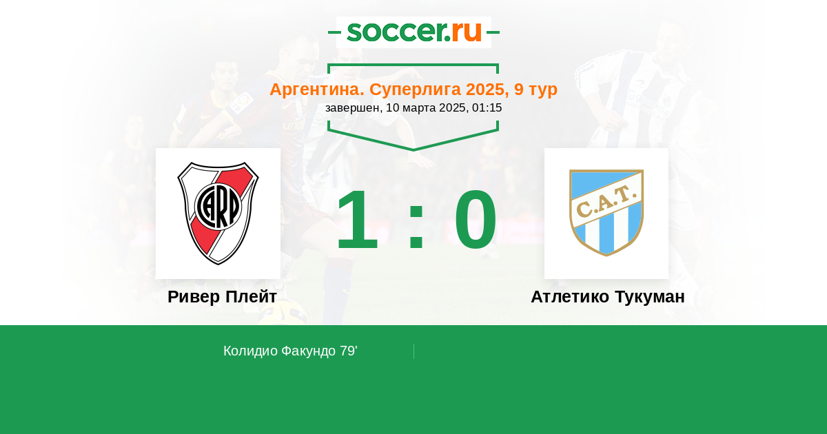 | Ривер Плейт | 17:10 | 8:4 | 9:6 |