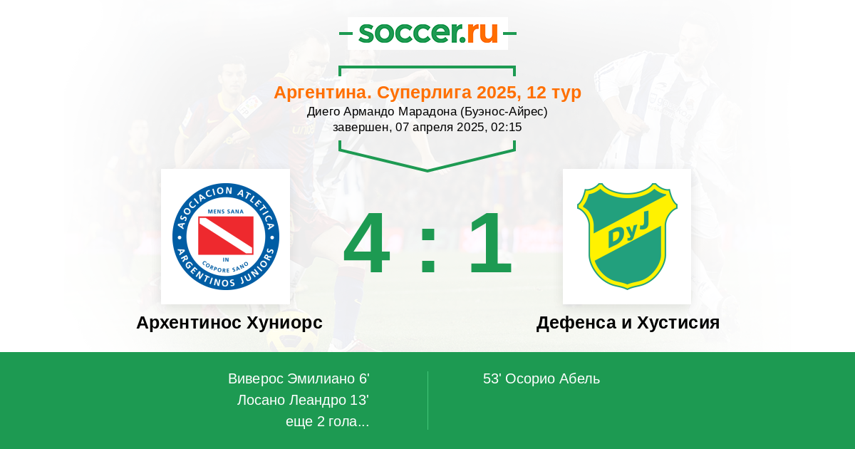 | Архентинос Хуниорс | Дефенса и Хустисия | |