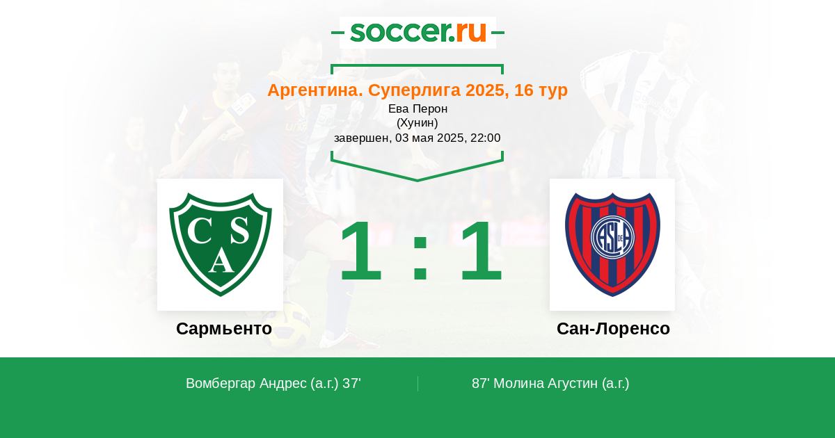 | Сармьенто | Сан-Лоренсо | |