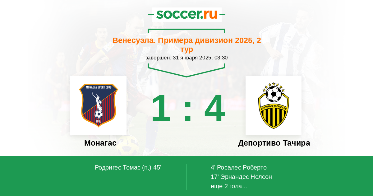 | Депортиво Тачира | 68:55 | 38:18 | 30:37 |