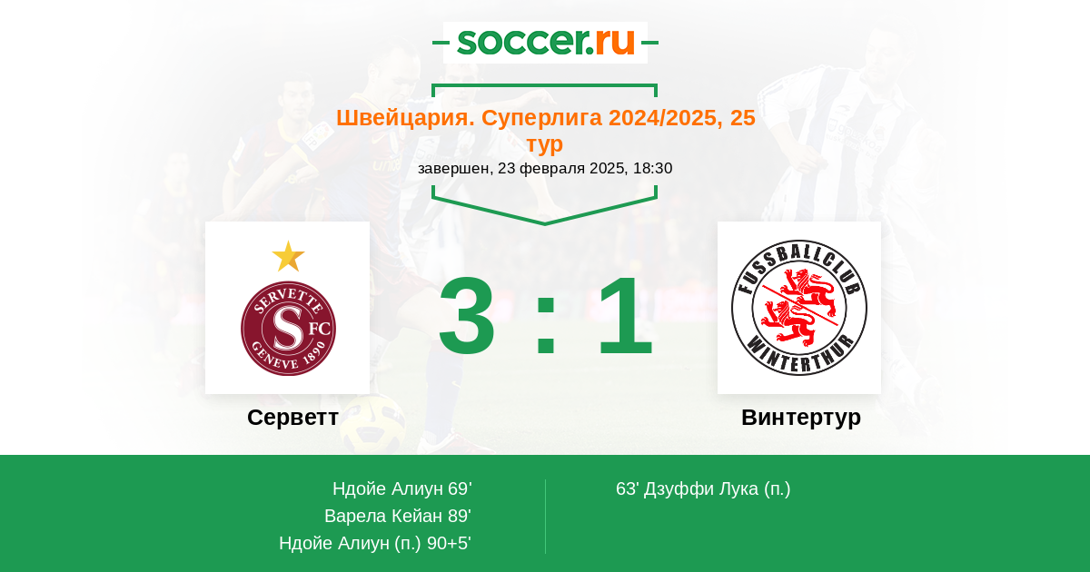 | Серветт | 20:14 | 11:5 | 9:9 |