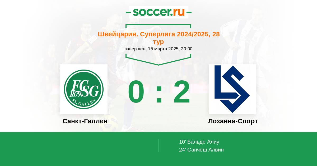 | Санкт-Галлен | 105:75 | 54:30 | 51:45 |