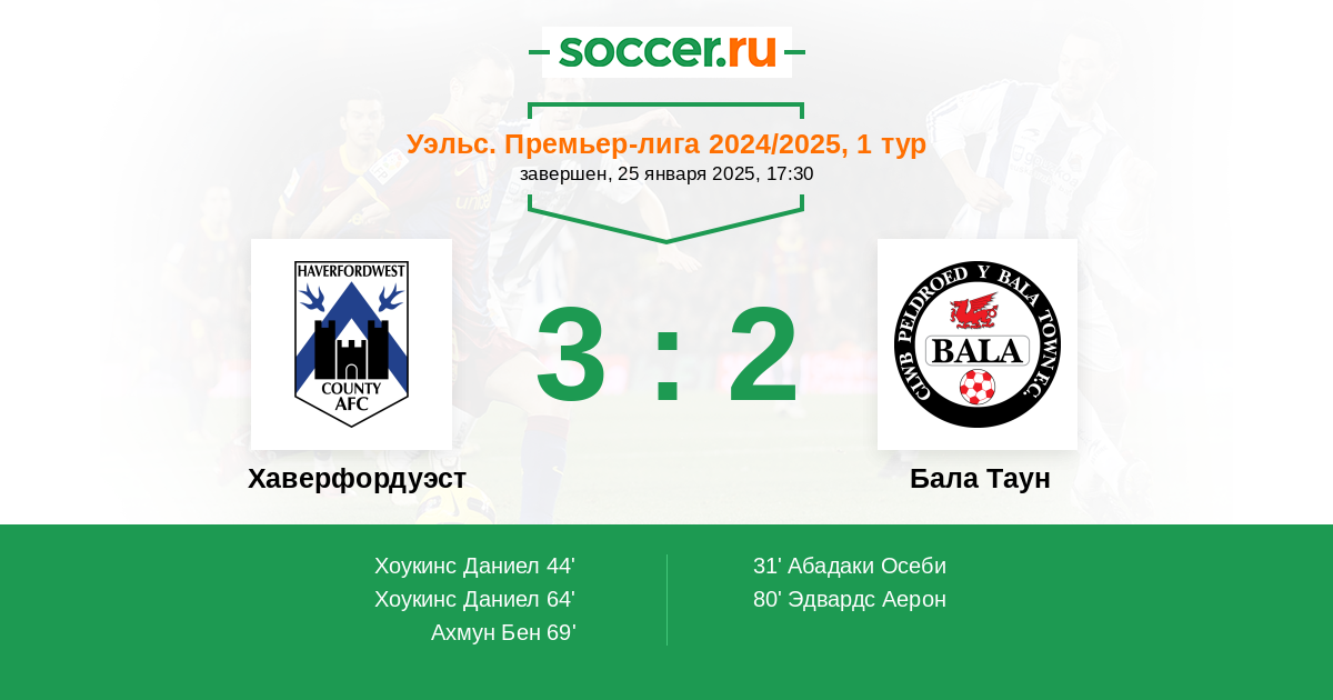 | Хаверфордуэст | 26:34 | 13:18 | 13:16 |