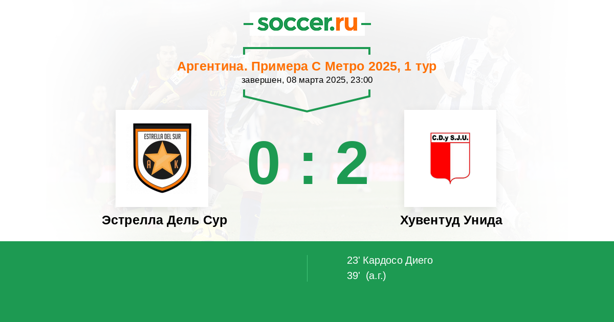 | Эстрелла Дель Сур | Хувентуд Унида | |
