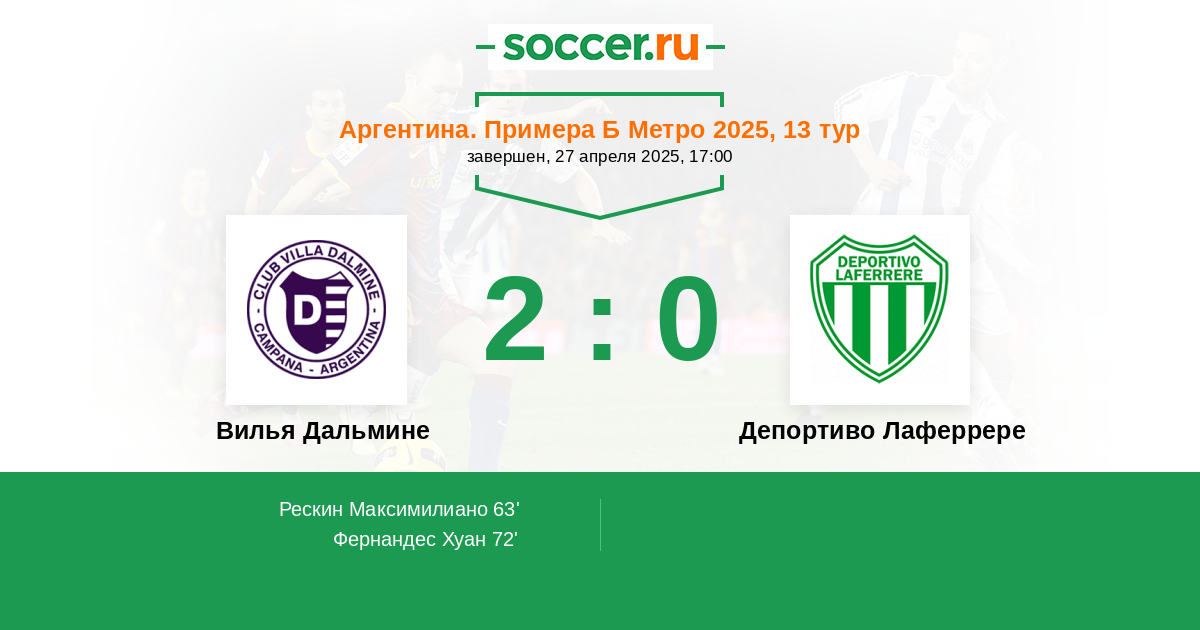 | Вилья Дальмине | Депортиво Лаферрере | |