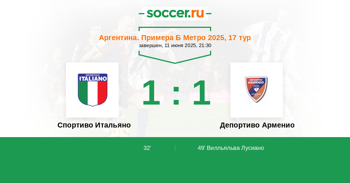 | Аргентина. Примера С Метро | 2 | 0 | 1 | 1 |