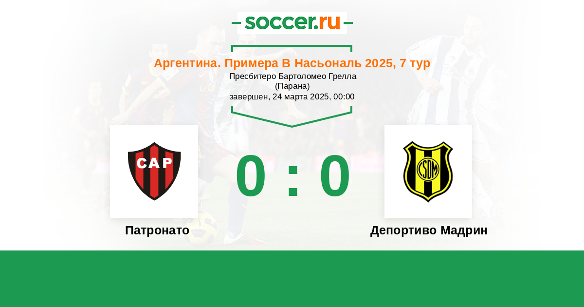 | Депортиво Мадрин | 2:0 | 2:0 | 0:0 |