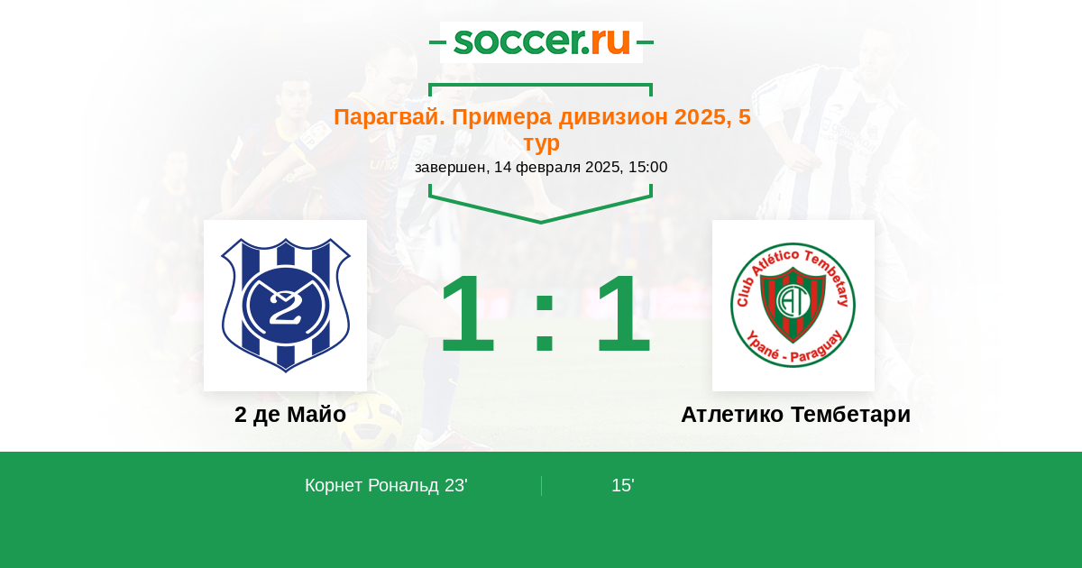 | 2 де Майо | Атлетико Тембетари | |