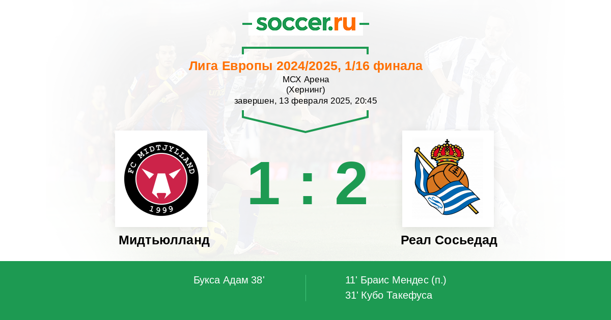 | Мидтьюлланд | Реал Сосьедад | |