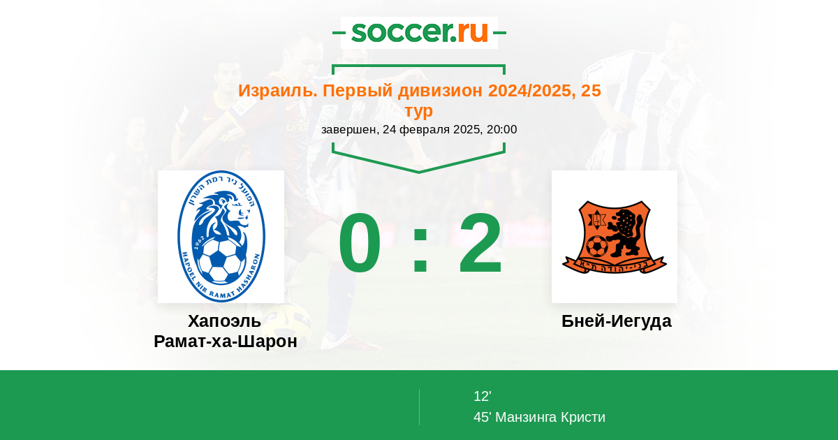| Хапоэль Рамат-ха-Шарон | Бней-Иегуда | |