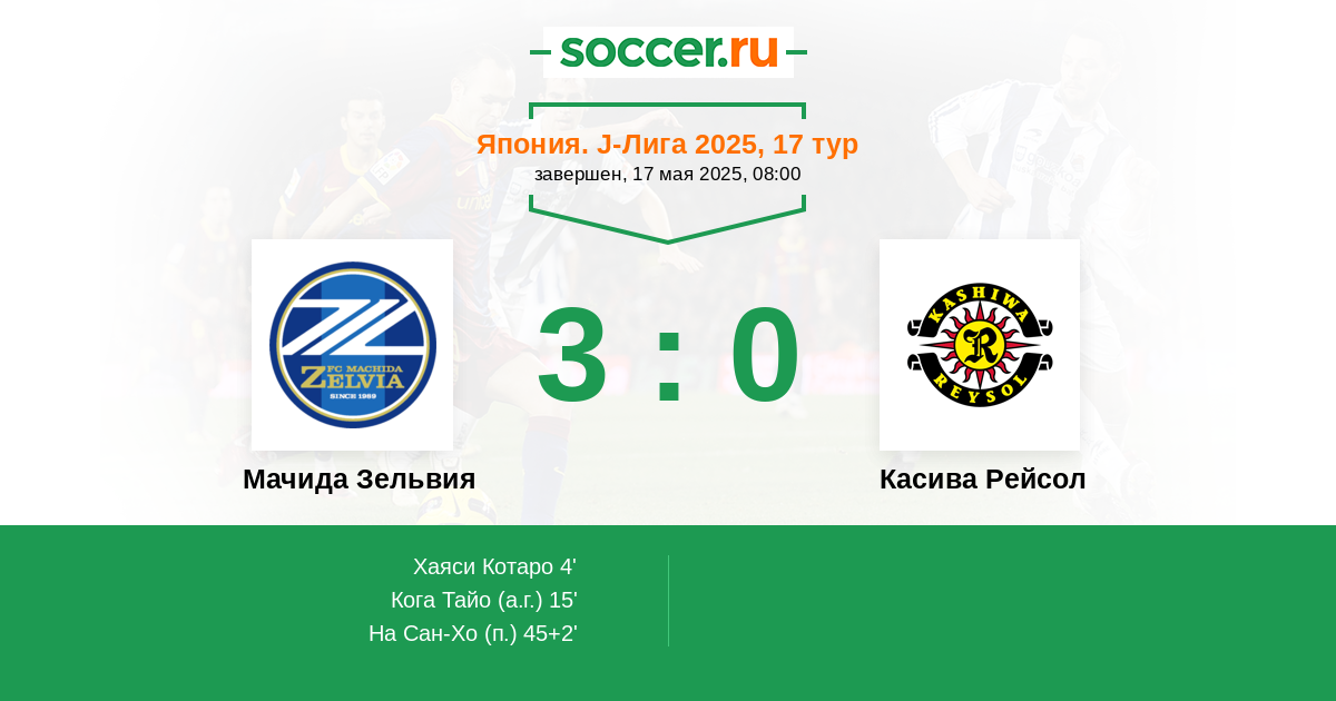 | Мачида Зельвия | Касива Рейсол | |
