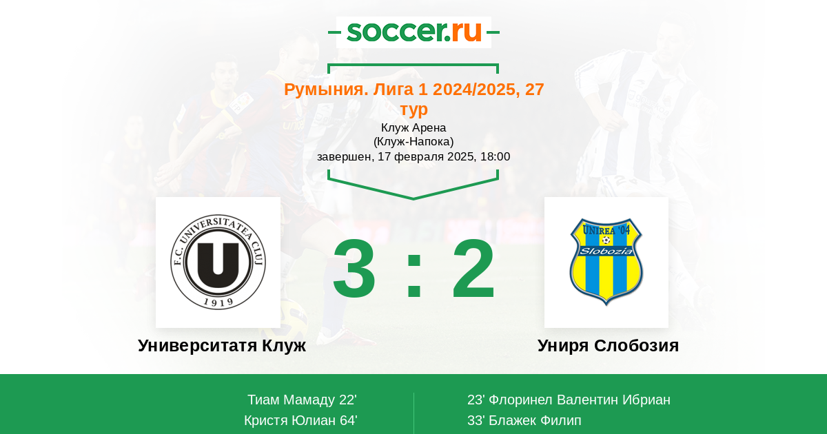 | Университатя Клуж | Униря Слобозия | |