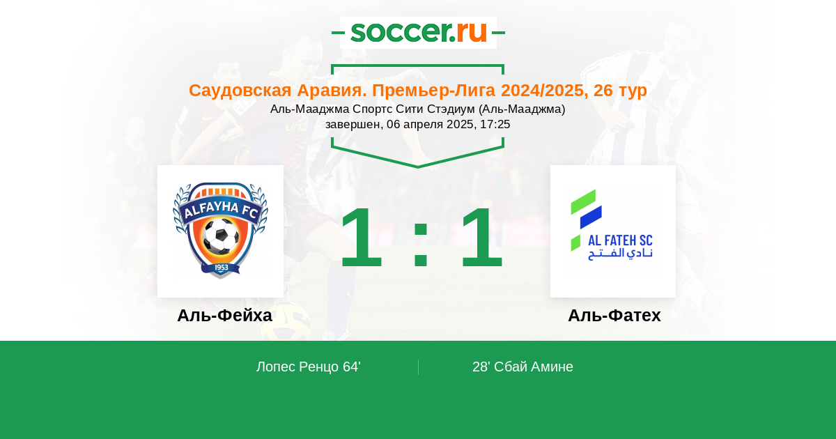 | Аль-Фейха | 23:18 | 12:9 | 11:9 |