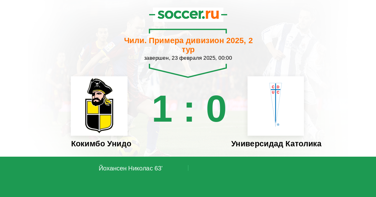 | Универсидад Католика | 48:29 | 26:14 | 22:15 |