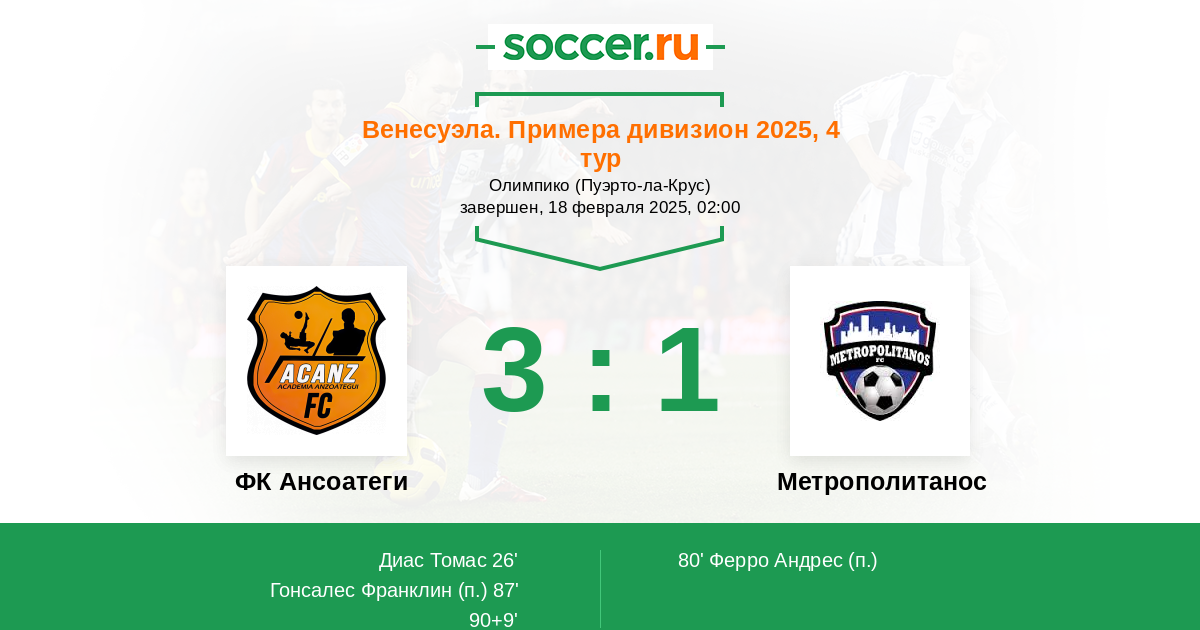 | ФК Ансоатеги | 2:1 | 0:0 | 2:1 |