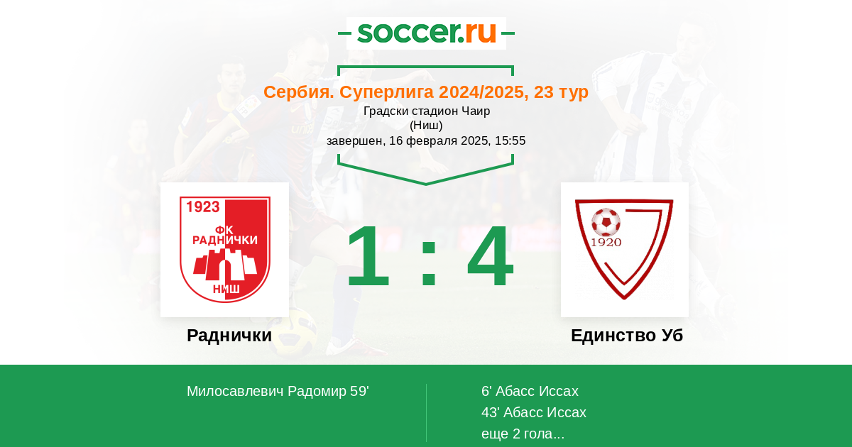 | Единство Уб | 1:5 | 0:2 | 1:3 |