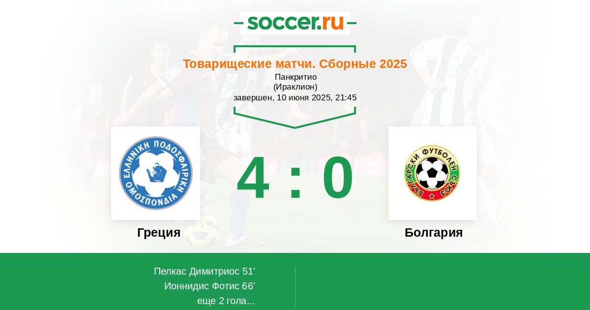 | Болгария | 4:0 | 4:0 | 0:0 |