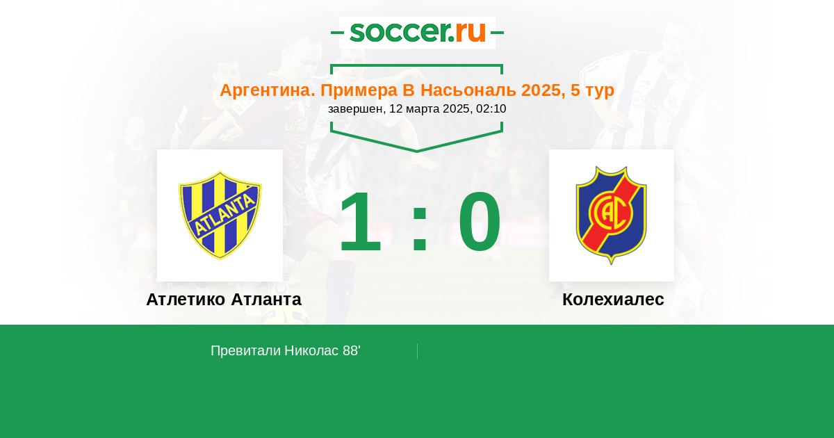 | Атлетико Атланта | Колехиалес | |