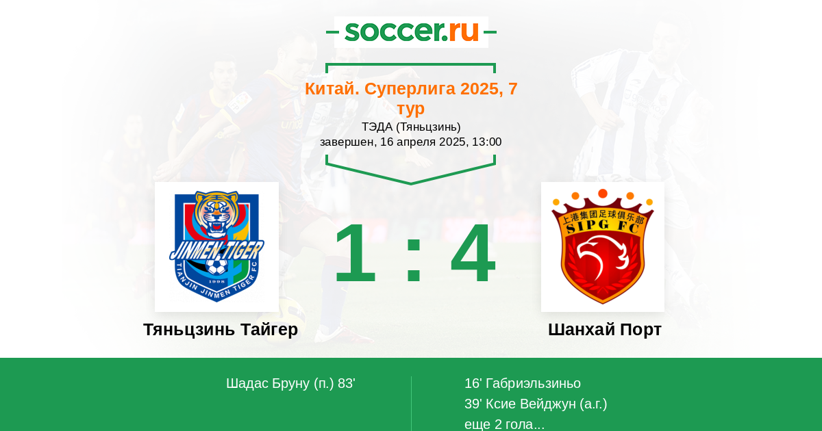 Тяньцзинь Тайгер 2:5 Шанхай Порт