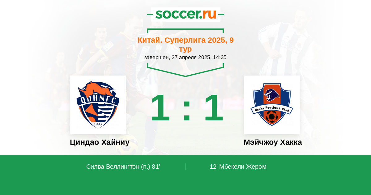 | Циндао Хайниу | 6:4 | 6:2 | 0:2 |