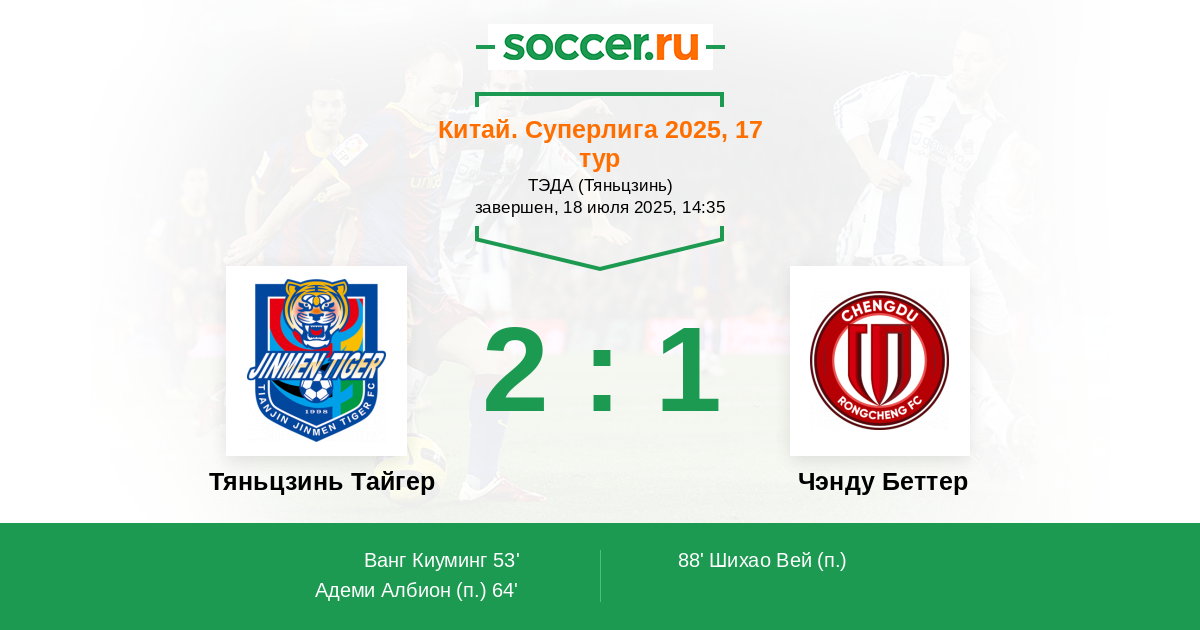 | Тяньцзинь Тайгер | Чэнду Беттер | |