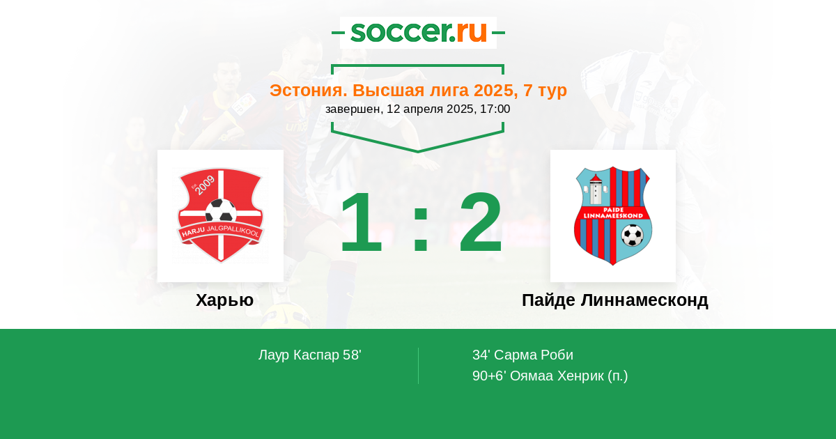 | Пайде Линнамесконд | 11:5 | 9:2 | 2:3 |