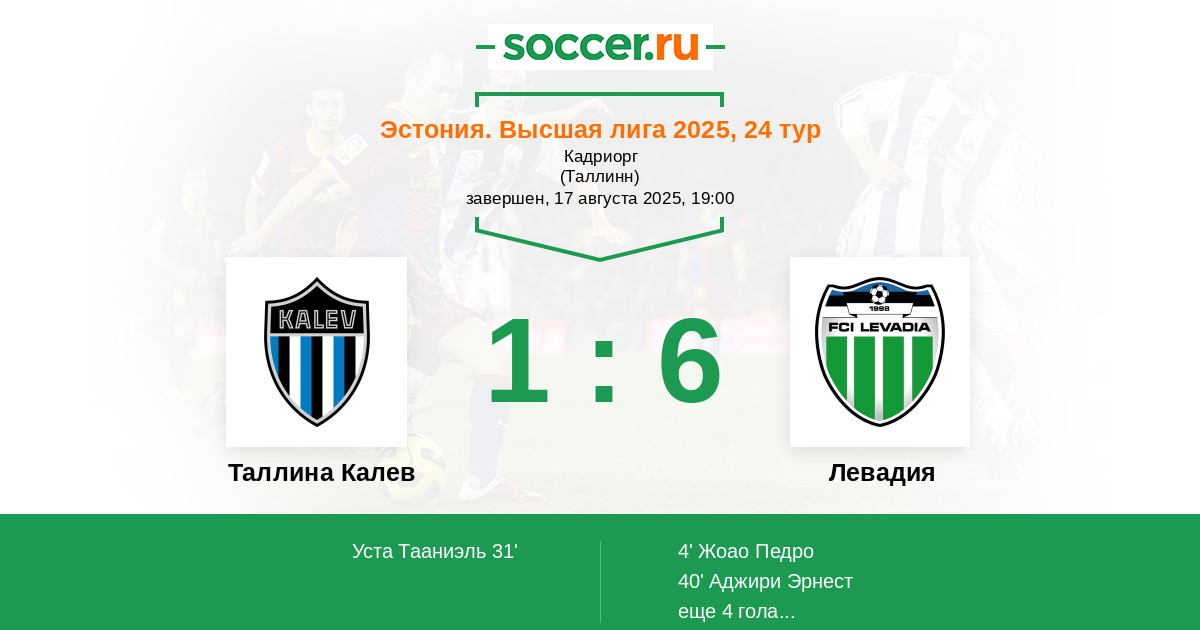 | Эстония. Высшая лига | 50 | 1 | 45 | 4 |