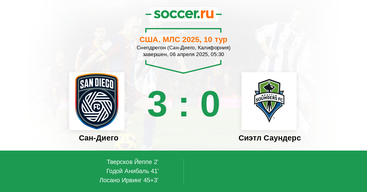 | Сиэтл Саундерс | 1:0 | 1:0 | 0:0 |