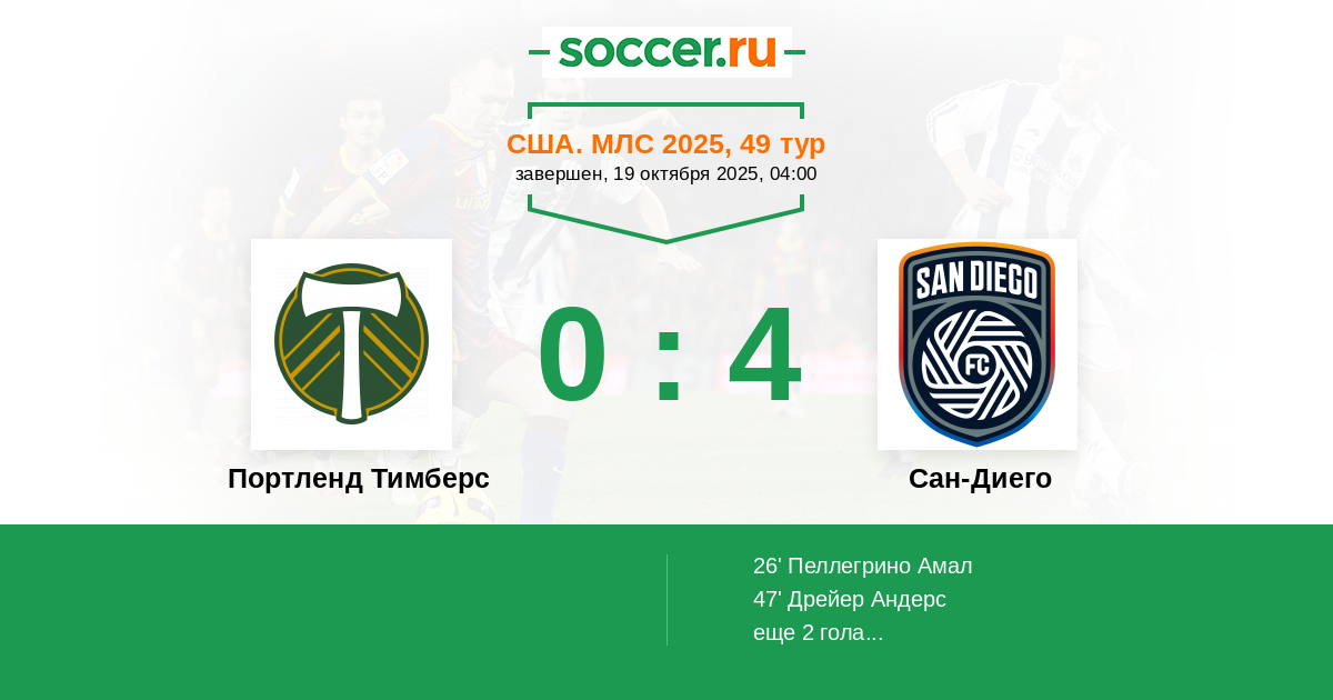 | Портленд Тимберс | Сан-Диего | |