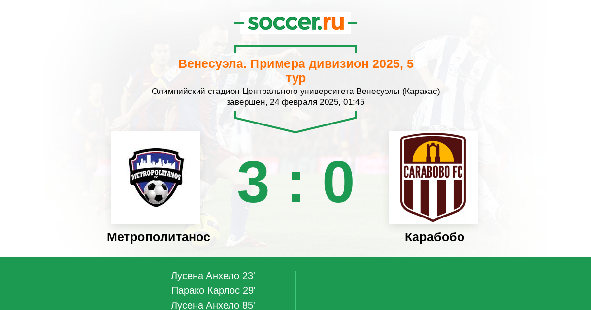 | Карабобо | 38:24 | 19:9 | 19:15 |