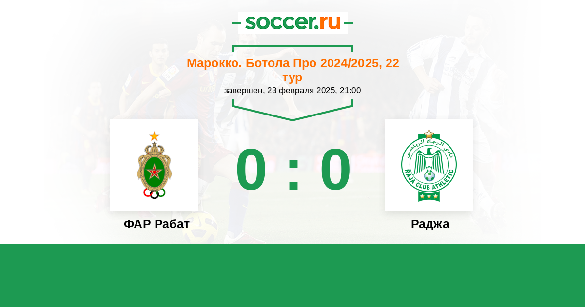 | ФАР Рабат | 45:43 | 24:13 | 21:30 |